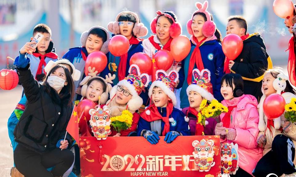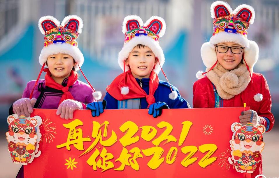 2021年12月31日,內(nèi)蒙古呼和浩特市玉泉區(qū)南柴火市街小學開展“2022 虎虎生威 共迎未來”迎新年主題活動,師生通過繪制生肖虎、快閃、拍攝創(chuàng)意合影等方式,在歡聲笑語中迎接2022年的到來。