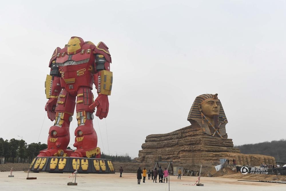 2月21日,安徽省滁州市南譙區(qū)的“山寨獅身人面像”和巨型“鋼鐵俠”吸引眾多市民和游客慕名前來圍觀拍照