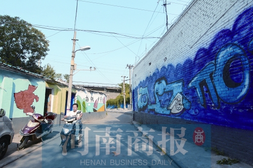 在老張眼里,這片臨近京廣、隴海兩條鐵路線的平房藏在城市的犄角旮旯處,被人遺忘多年,道窄,周圍破破爛爛的,幾乎沒人會(huì)注意這兒。但涂鴉墻的出現(xiàn),讓這兒有了“人氣兒”。