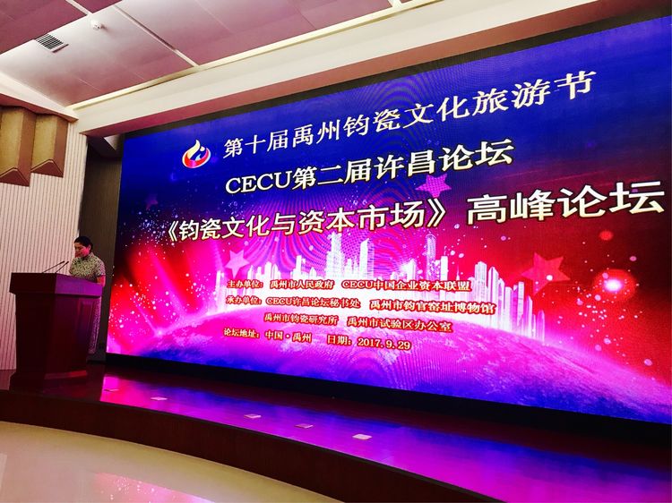 9月29日,由CECU中國企業(yè)資本聯(lián)盟、禹州市人民政府主辦,CECU許昌論壇秘書處、禹州市鈞官窯址博物館、禹州市鈞瓷研究所、禹州市試驗(yàn)區(qū)管理辦公室承辦的鈞瓷文化與資本市場研討會在禹州鈞官窯址博物館學(xué)術(shù)報(bào)告廳舉辦。