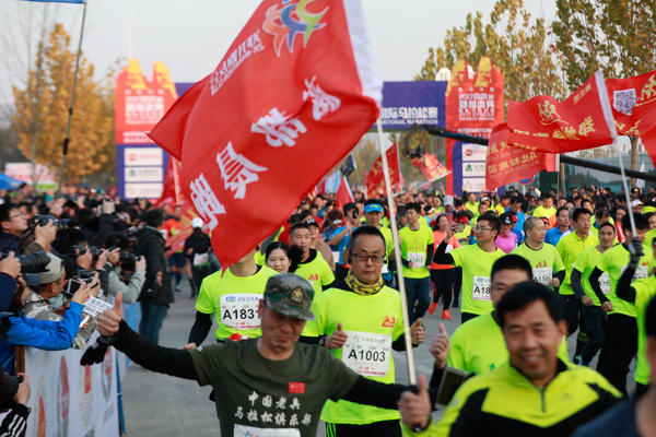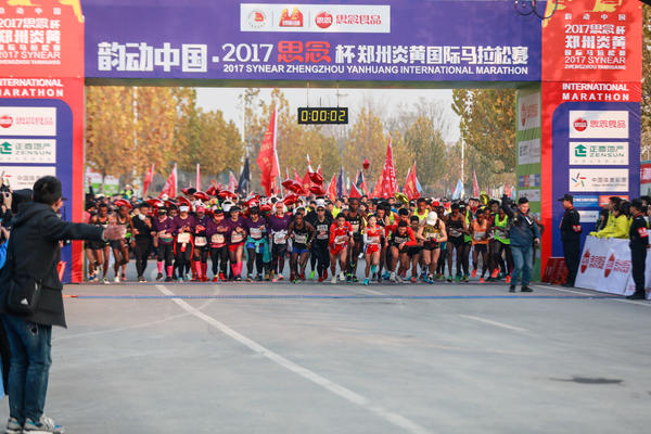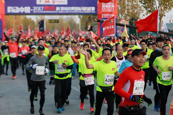 11月26日上午,2017鄭州炎黃國際馬拉松賽在鄭州市惠濟(jì)區(qū)碧源月湖公園準(zhǔn)時鳴槍開跑。本屆炎黃馬拉松以“千年炎黃情,萬眾馬拉松”為主題,以弘揚中華傳統(tǒng)文明為宗旨,是國內(nèi)最具中華文明特色文化的馬拉松賽事之一。比賽設(shè)有全程、半程馬拉松和5公里小馬拉松3個競賽項目,其中全、半程項目今日早上8點鳴槍,5公里小馬拉松項目今日上午9點鳴槍。參賽選手中包括了埃塞俄比亞、肯尼亞、蒙古等國家的著名運動員。來自世界各地的萬名馬拉松選手在滔滔黃河之畔暢跑,一飽華夏文明起源地的特色風(fēng)貌。
