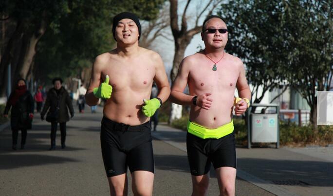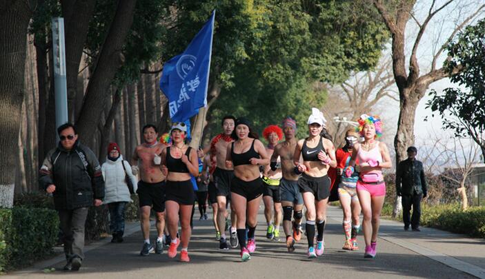 2018年1月13日,江蘇省南京市,清晨八點多,南京氣溫零下3度,近百名健身愛好者脫去厚重的外套,身著泳衣、短褲等環(huán)玄武湖進(jìn)行“光豬跑”,通過獨特的方式迎接即將到來的農(nóng)歷新年,也是向人們倡導(dǎo)親近自然、積極健身的健康生活方式。