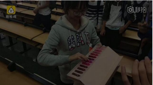 3月7日,華南理工大學(xué) 大一機械三班的男生們給班里唯一一名女生送了盒口紅。女生表示,作為班上唯一的女生,開學(xué)至今她幾乎連喝水都沒自己開過瓶,從來沒有自己提過行李箱。