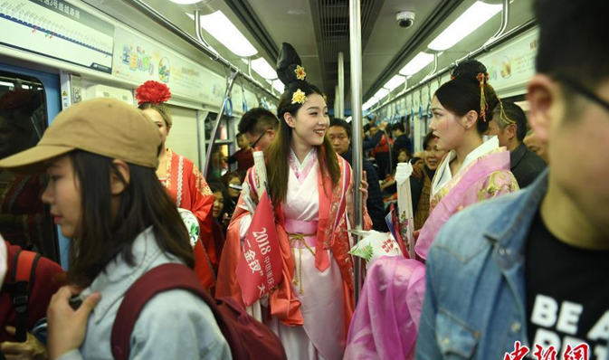 3月30日,重慶觀音橋步行街上幾位美女身著古裝玩穿越。據(jù)悉,她們這樣的裝扮是為了參加重慶一景區(qū)的宣傳活動(dòng),在鬧市為景區(qū)文化進(jìn)行宣傳。圖為幾位美女身著古裝穿越步行街。