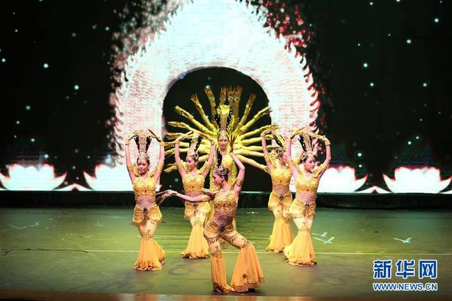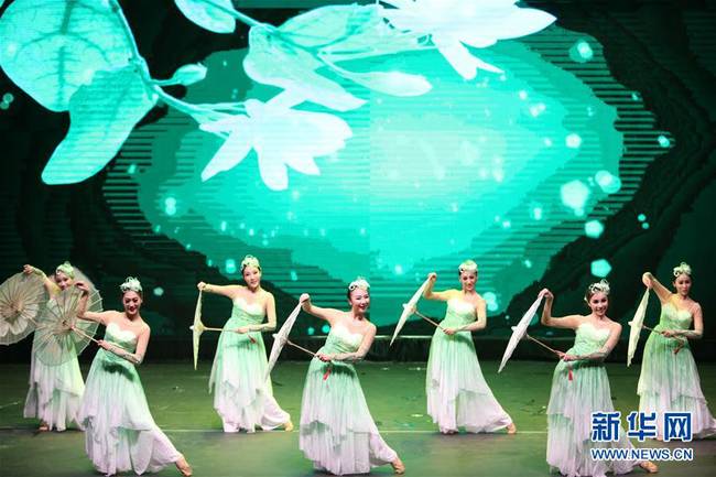 6月24日,在科威特哈瓦利省,廣西文化藝術(shù)團(tuán)的演員表演舞蹈。由中國駐科威特大使館和科威特文化、藝術(shù)與文學(xué)委員會聯(lián)合舉辦的“美麗中國·心儀廣西”文藝演出24日在科威特哈瓦利省舉行。此次文藝演出是正在舉辦的科威特第21屆國際音樂節(jié)的一部分。