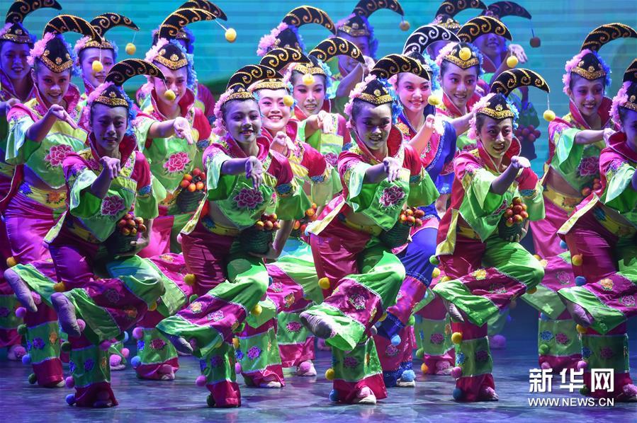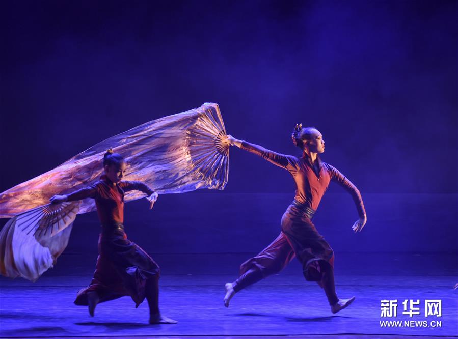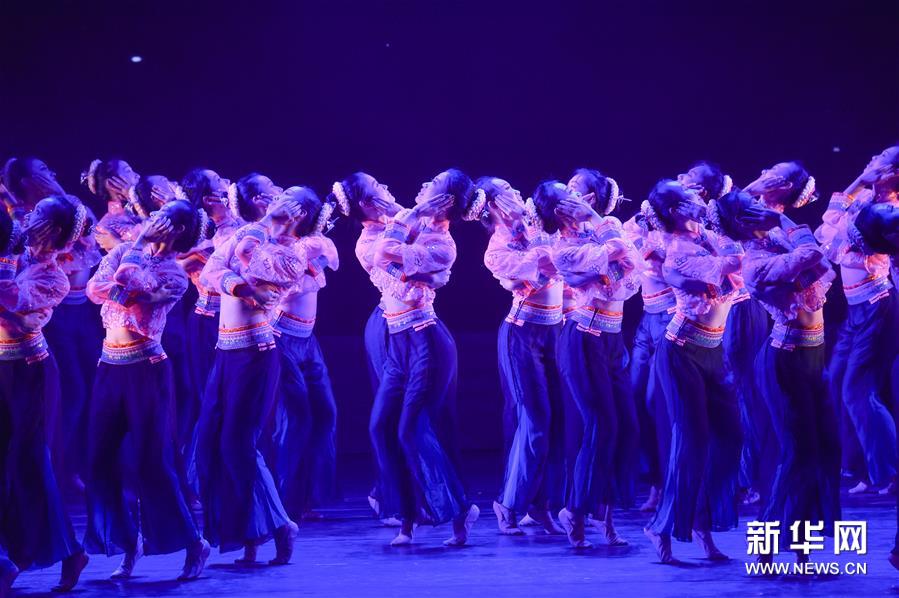 7月4日,在福建師范大學(xué),福建師范大學(xué)音樂(lè)學(xué)院學(xué)生在表演群舞《挽·面》。當(dāng)日,第七屆海峽兩岸青年舞蹈嘉年華開幕式暨海峽兩岸青少年優(yōu)秀舞蹈展演在福建省福州市舉行。該活動(dòng)由福建省文聯(lián)、福建省舞蹈家協(xié)會(huì)主辦,近千名兩岸青少年舞者參加。