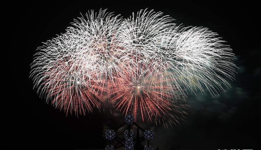 7月26日,煙花在比利時首都布魯塞爾原子球塔附近的夜空綻放,比利時布魯塞爾的地標(biāo)性建筑——原子球塔附近煙花綻放,為市民和游客在夏夜增添了別樣風(fēng)景。
