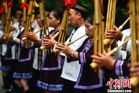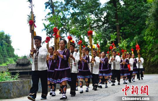 7月26日,在廣西龍勝各族自治縣樂江鎮(zhèn)地靈村,侗族同胞參加民俗巡游。