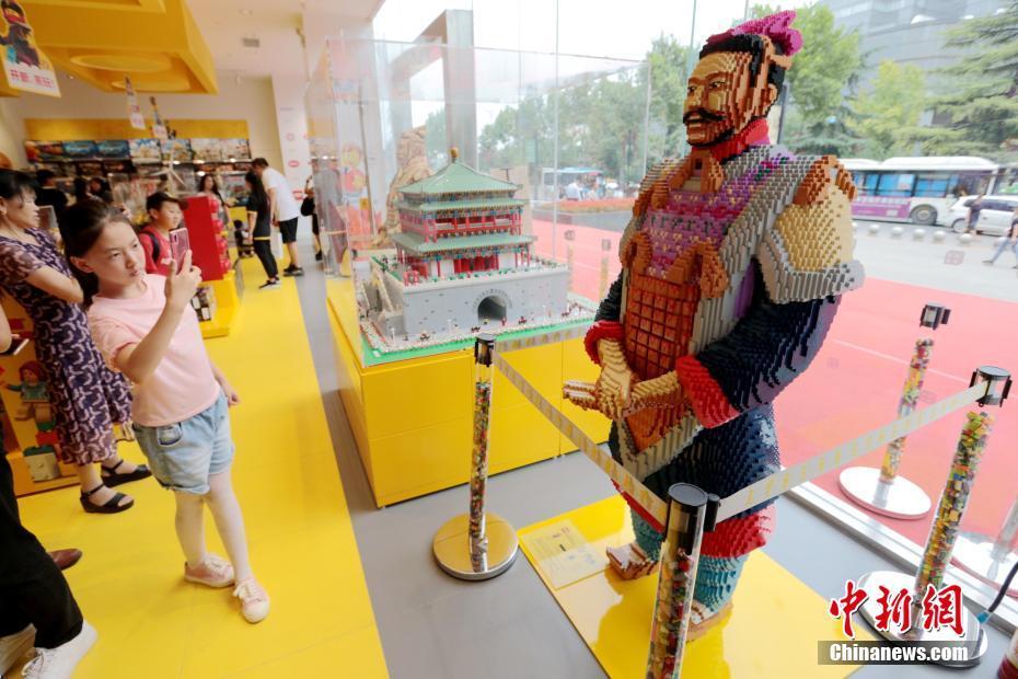 8 月5日,一尊由樂高積木拼出的“真彩兵馬俑”吸引顧客。近日,西北地區(qū)首家樂高授權(quán)專賣店在西安南門外正式開業(yè),由樂高積木搭建而成的大雁塔、鐘樓等亮相該家零售店。此外,店內(nèi)展出兩尊高達1.9米、重165公斤、各由5.6萬塊樂高積木拼搭而成的彩色兵馬俑,吸引了不少市民和游客前來參觀拍照。