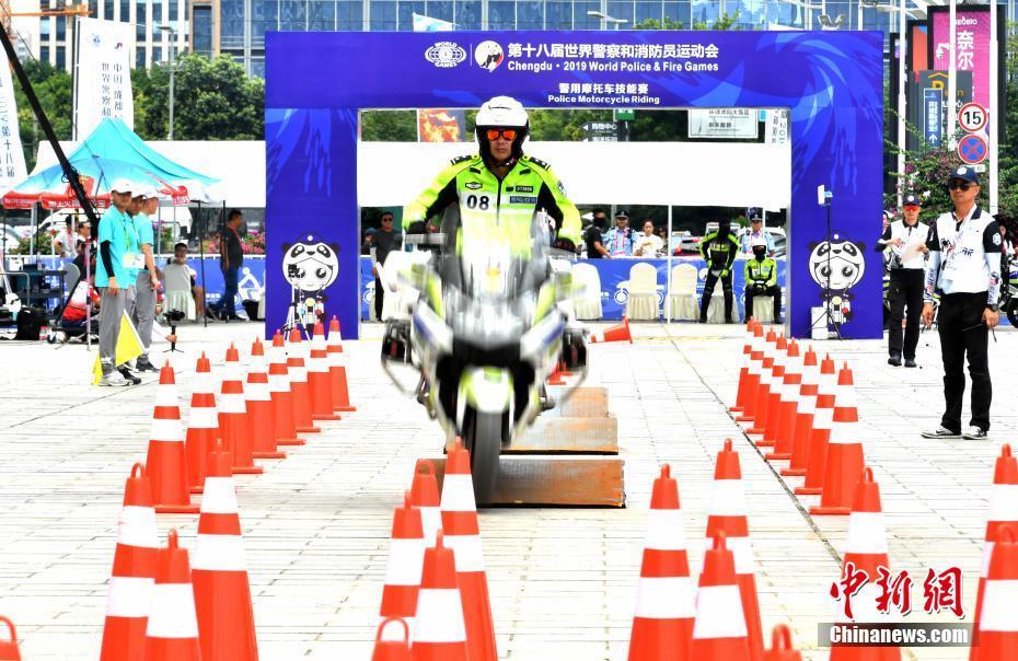 8月14日,第十八屆世界警察和消防員運(yùn)動(dòng)會(huì)警用摩托車技能賽開賽,來自全球的警界精英車手,在賽場上同場競技。