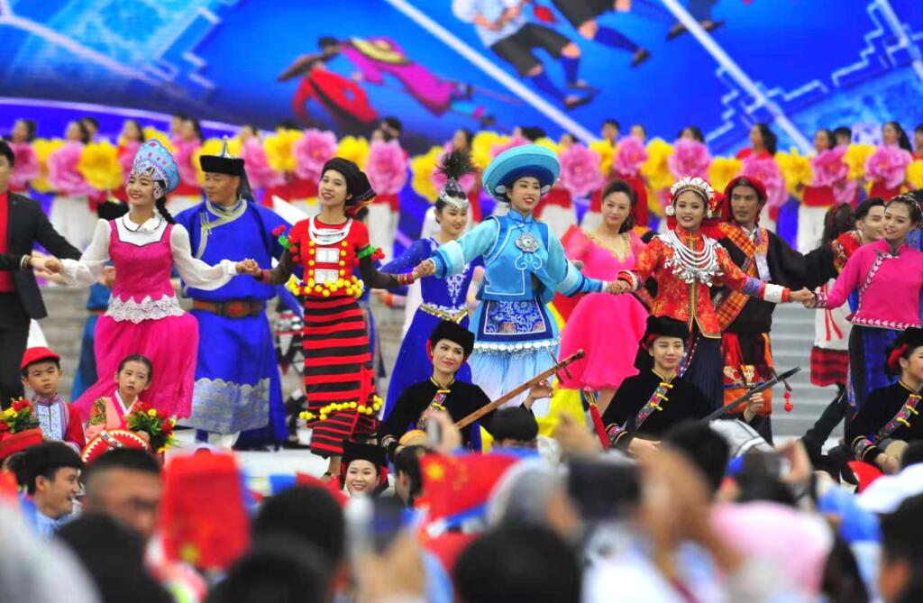 9月12日,第十一屆全國少數(shù)民族傳統(tǒng)體育運(yùn)動會民族大聯(lián)歡活動在炎黃廣場盛大開幕。來自全國各地的少數(shù)民族運(yùn)動員、社會各界嘉賓、志愿者等一萬多人參與了這場民族大Party。