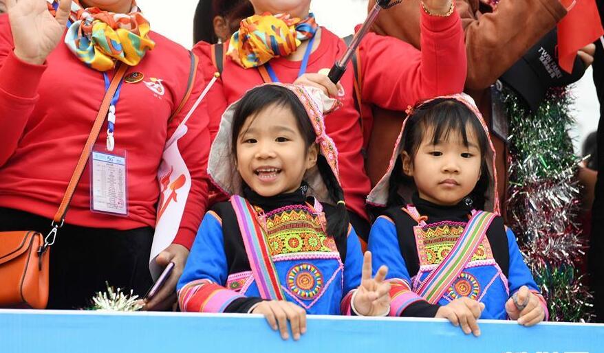 1月28日,第十五屆云南墨江國(guó)際雙胞胎文化節(jié)舉行花車巡游,來自世界各地的1000余對(duì)雙胞胎歡聚在北回歸線的云南省普洱市墨江哈尼族自治縣,乘坐花車巡游,展示多姿風(fēng)采。