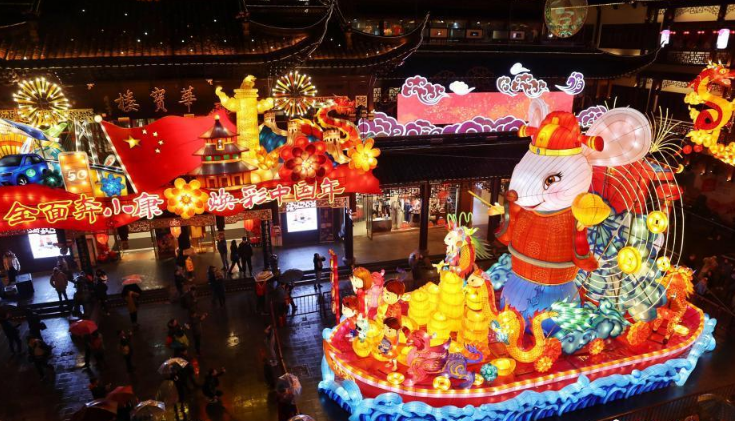 1月11日晚,2020年豫園新春民俗藝術(shù)燈會亮起主題彩燈。據(jù)介紹,今年豫園燈會首次加入科技元素,每晚6點,AI系統(tǒng)會用語音"喊亮"整個豫園。