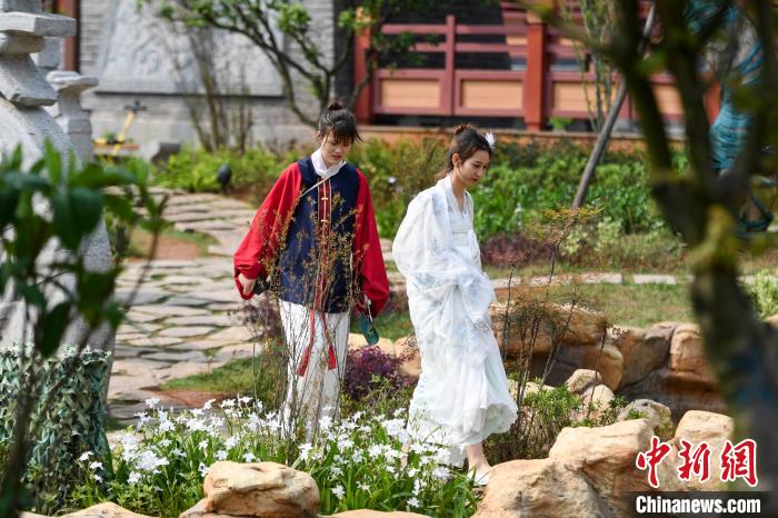 3月26日,正值農(nóng)歷三月三中國(guó)華服日,眾多華服愛(ài)好者身著各式華服在長(zhǎng)沙方特內(nèi)結(jié)伴而行,向大家展示中華民族獨(dú)特文化魅力的系列服裝服飾。