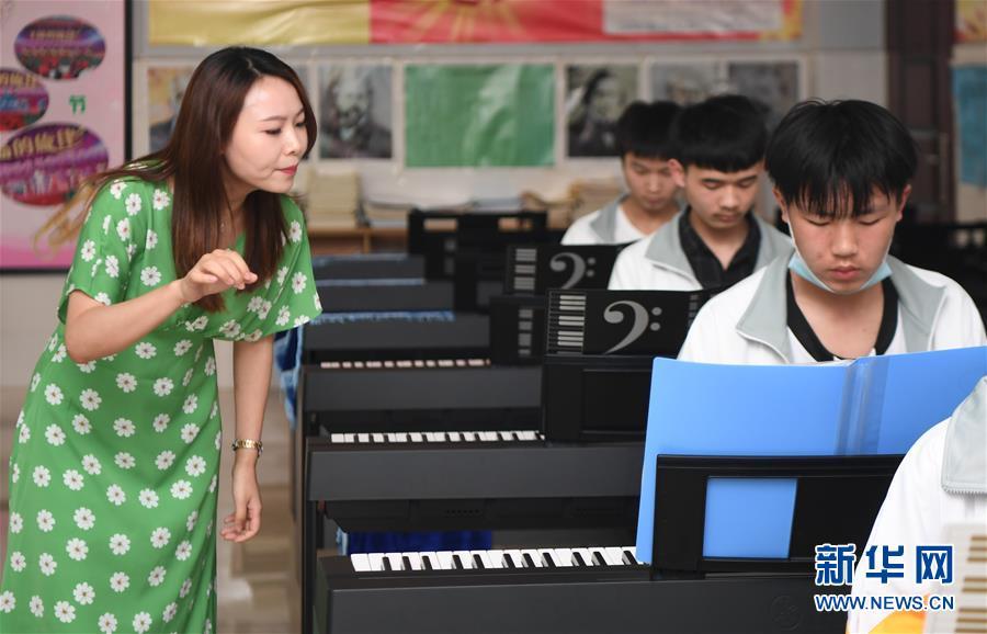 5月22日,瀘溪縣第五中學(xué)的老師(左)在給學(xué)生上鋼琴課。 瀘溪縣第五中學(xué)位于湖南省湘西土家族苗族自治州瀘溪縣武溪鎮(zhèn),是一所農(nóng)村普通完全中學(xué)。學(xué)校自2006年起免費(fèi)開設(shè)各類藝術(shù)培訓(xùn)課,培養(yǎng)農(nóng)村學(xué)生的藝術(shù)興趣、專業(yè)特長。