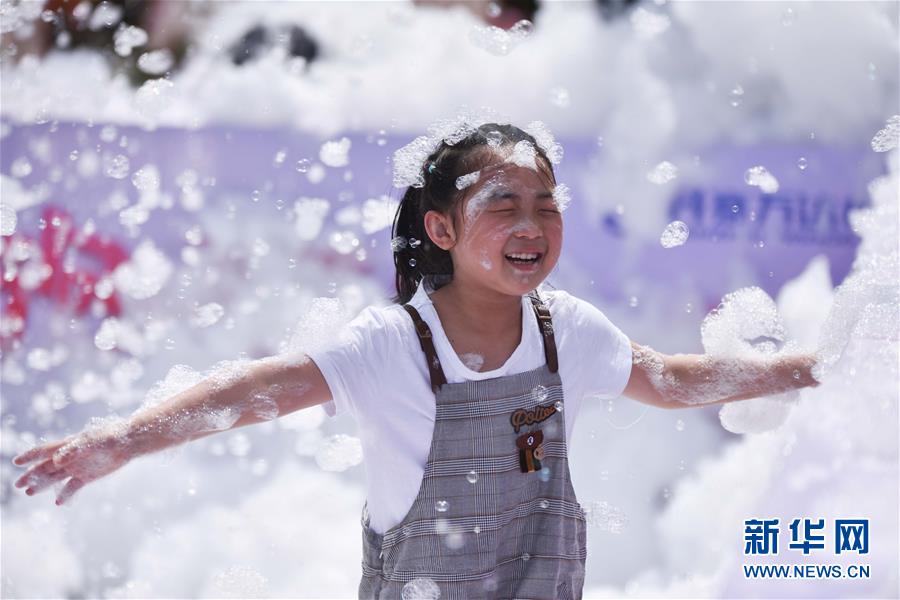 5月30日,小朋友在貴州省黔東南苗族侗族自治州丹寨縣萬達小鎮(zhèn)泡泡狂歡場嬉戲。 “六一”國際兒童節(jié)前夕,各地的孩子們通過豐富多彩的形式迎接自己的節(jié)日。