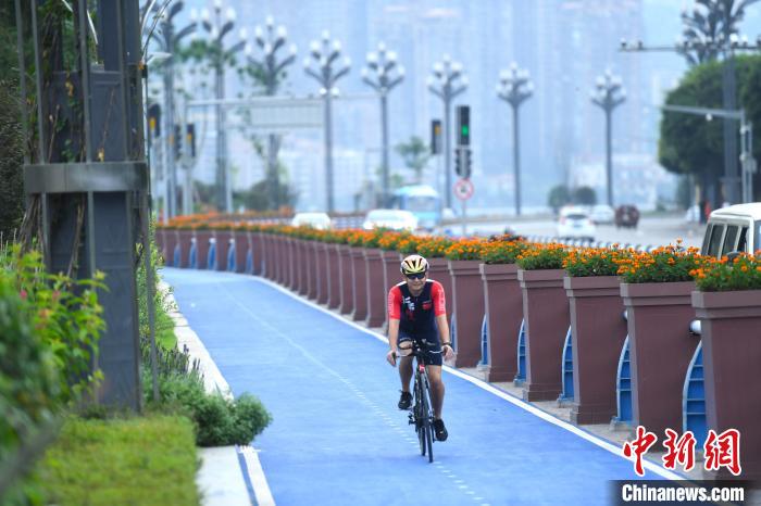 7月22日,北濱漫行步道吸引許多健身愛好者在此鍛煉。觀江城風(fēng)光,覽花團(tuán)簇簇,這是重慶6萬(wàn)平方米的“城市陽(yáng)臺(tái)”——北濱漫行步道。據(jù)悉,它結(jié)合嘉陵江濱水空間開發(fā),將人行空間從原來(lái)的3米拓寬到15米,全長(zhǎng)4.08公里,重塑“江與城”的靈氣。步道、跑道、自行車道的結(jié)合,吸引了許多健身愛好者。