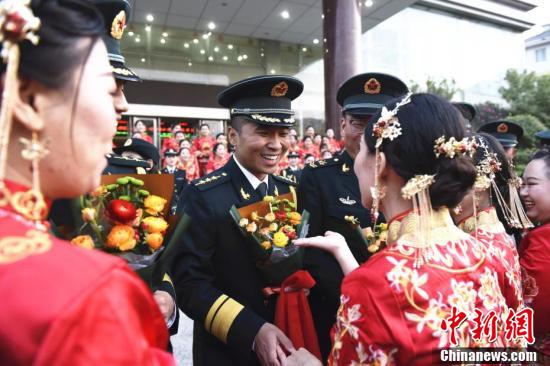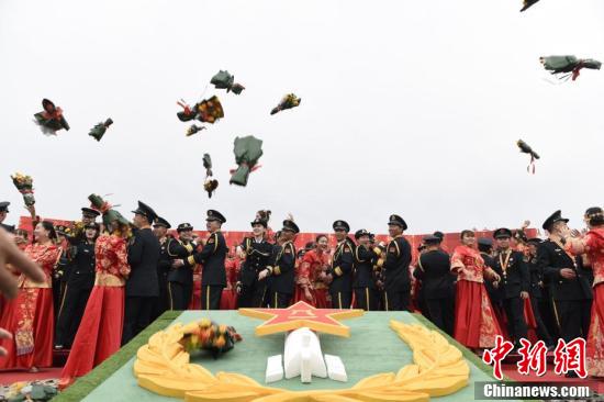 9月20日,諧音“就愛你”,當(dāng)日,火箭軍某部張燈結(jié)彩,喜氣洋洋。該部為101對在一線號位奮戰(zhàn)的指揮員、操作號手在綠色軍營舉辦了一場浪漫而神圣的集體婚禮,為新娘送達(dá)“東風(fēng)聘書”、系列軍事化特色的迎親環(huán)節(jié)、新郎為新娘戴上有火箭軍專屬標(biāo)志的戒指、新娘為新郎佩戴國防服役章……整場婚禮儀式感滿滿,在親友及戰(zhàn)友們的祝福聲中,101對新人在軍營甜蜜結(jié)連理。