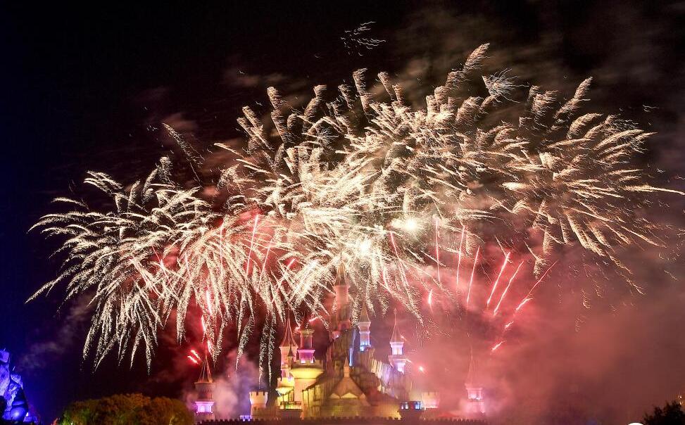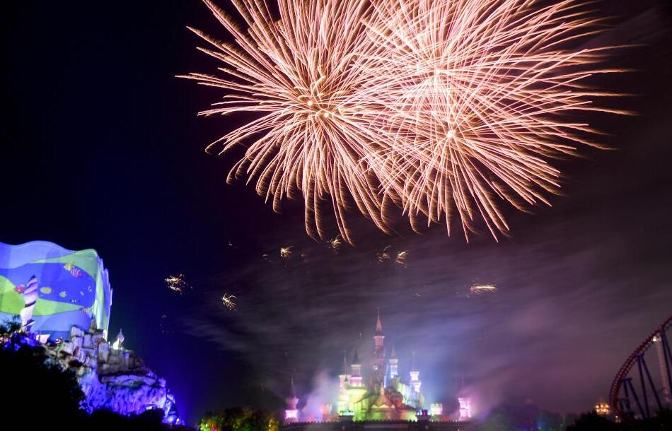 5月2日晚,湖南株洲,當(dāng)?shù)匾患矣螛穲@舉行“二次元”城堡煙花秀,煙花在動畫般的城堡上空綻放,吸引眾多游人駐足欣賞。