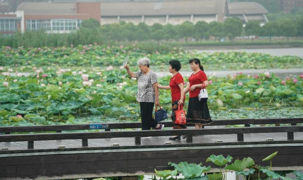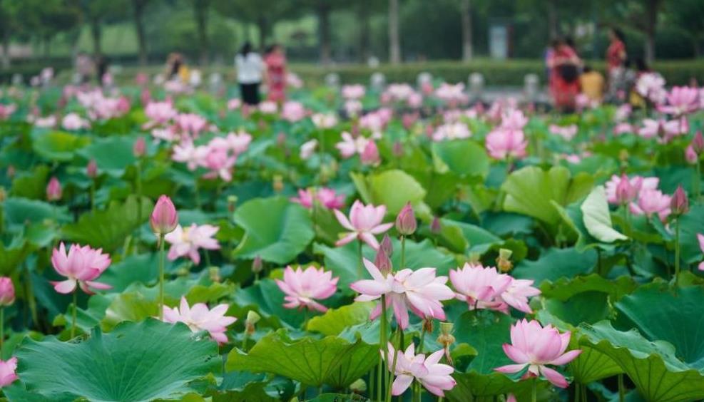 6月18日在蓮花湖公園內拍攝的盛開的荷花。時下,位于江蘇省南京市雨花臺區(qū)的蓮花湖公園內大片荷花陸續(xù)盛開,吸引不少市民賞花休閑。