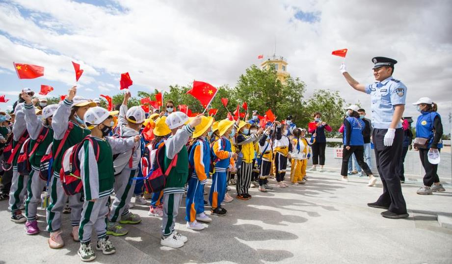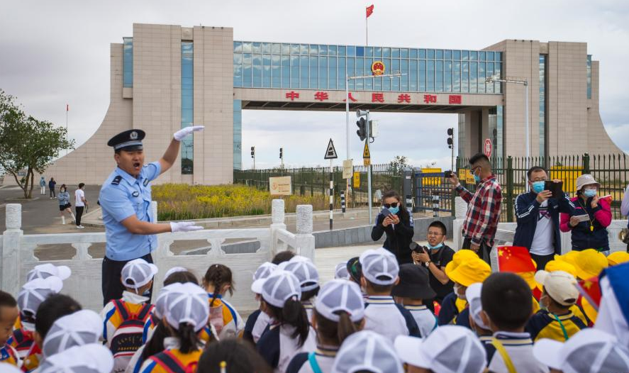6月17日,內(nèi)蒙古二連浩特市蒙古族幼兒園141名師生走進(jìn)國門愛國主義教育基地,開展“用好紅色資源 傳承紅色基因”愛國主義教育活動(dòng),內(nèi)蒙古出入境邊防檢查總站二連出入境邊防檢查站民警帶領(lǐng)孩子們參觀國門、界碑,講解國門、界碑的歷史沿革和在國防建設(shè)中的重要意義,以及民警維護(hù)邊境地區(qū)安全穩(wěn)定的感人事跡,開展邊境巡邏,界碑描紅等實(shí)踐活動(dòng),帶領(lǐng)孩子們登上巍峨的國門,欣賞中蒙邊境美麗的風(fēng)景,感受祖國的發(fā)展變化,為孩子們上了一堂直觀、生動(dòng)的愛國主義教育課。
